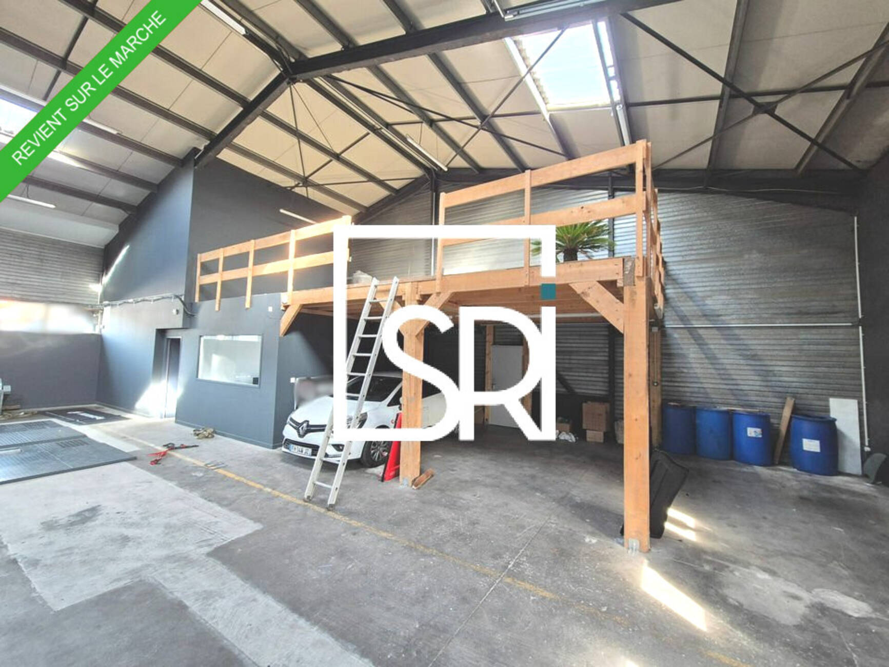 - Mezzanine en bois : 56 m².Possibilité de louer une surface de bureaux de 20 m² supplémentaires.