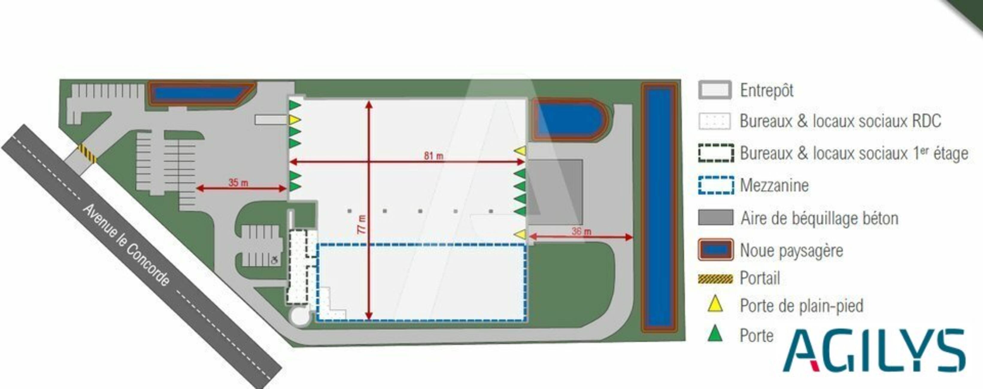 | Entrepôts | Bureaux | mezzanine | Surface totale sans mezzanine |