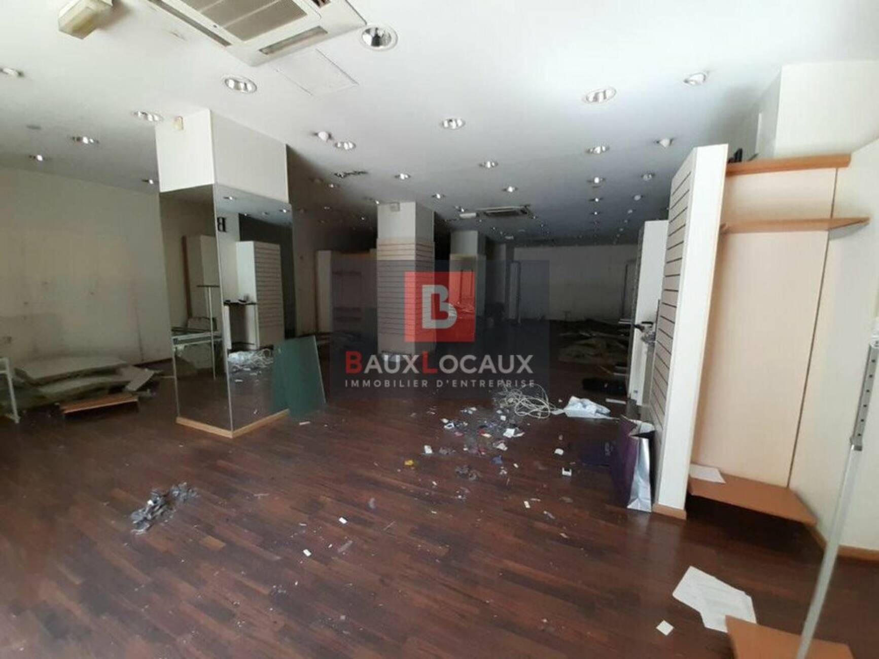 Local avec parquet, climatisation réversible, rideau métallique.