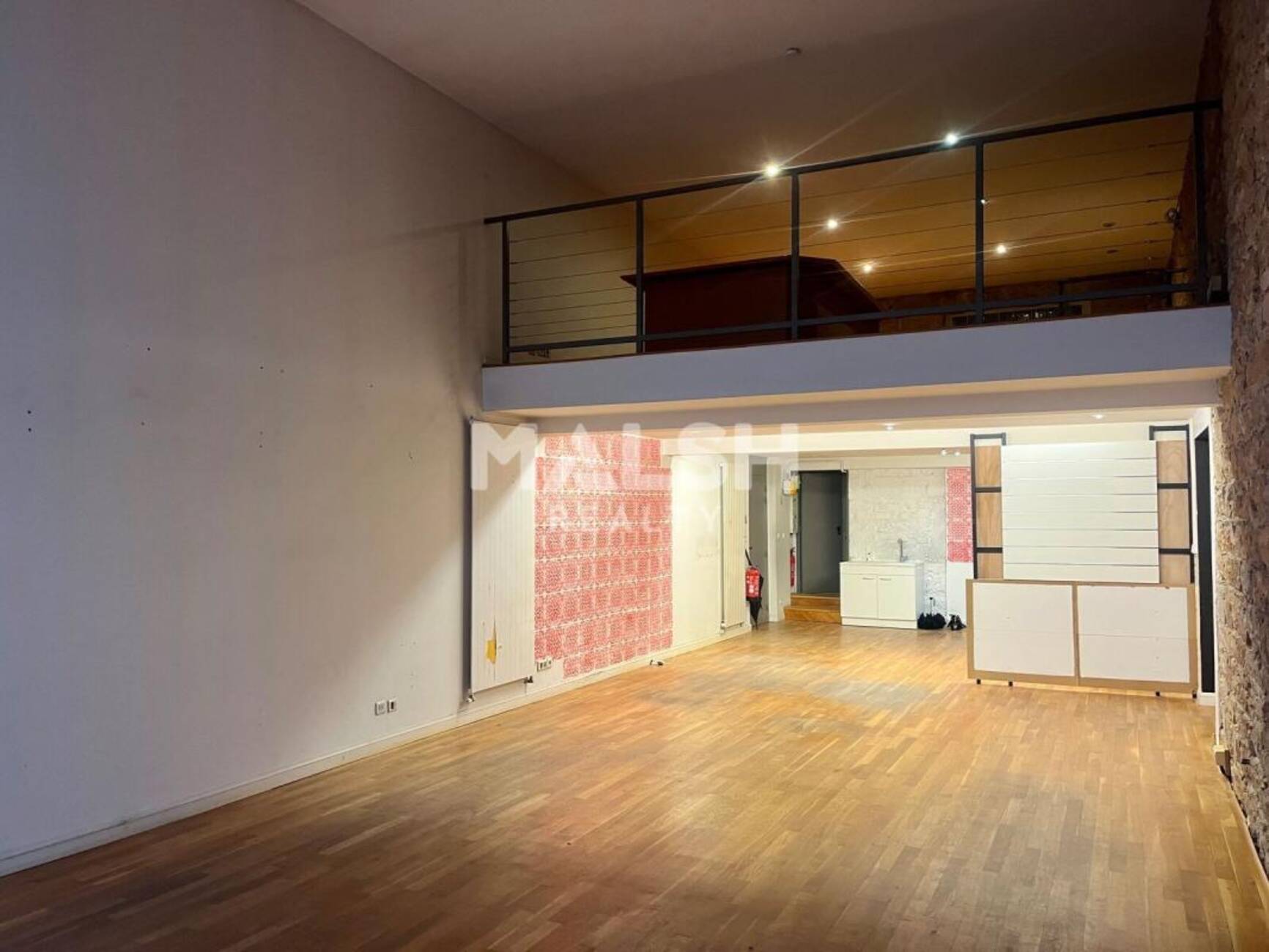 - Hauteur sous plafond mezzanine : environ 1m90