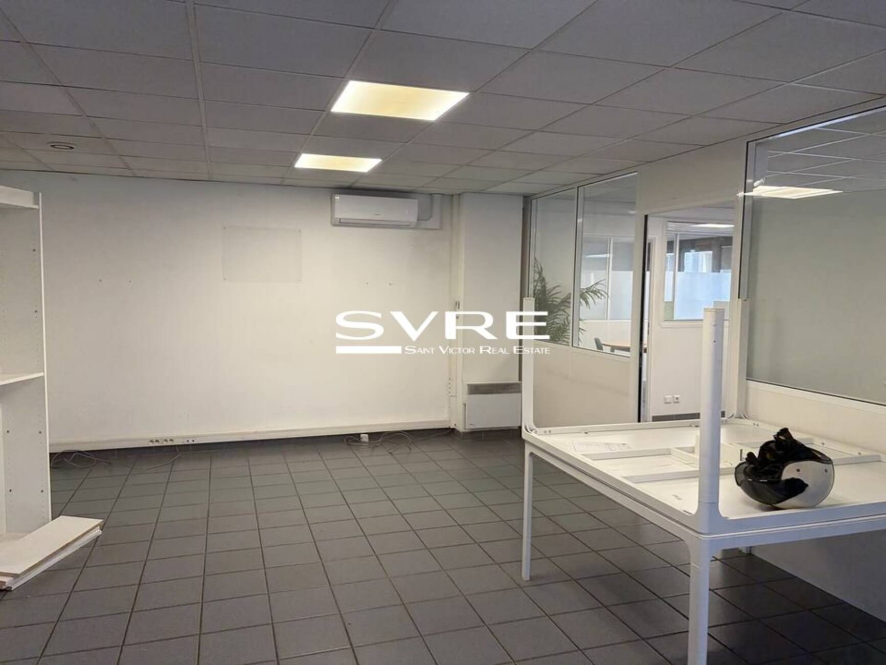 Le local se compose de cinq espaces distincts : un grand bureau d'accueil avec open space pouvant accueillir jusqu'à quatre postes, une salle de réunion, deux bureaux individuels, un espace cuisine / sanitaire.