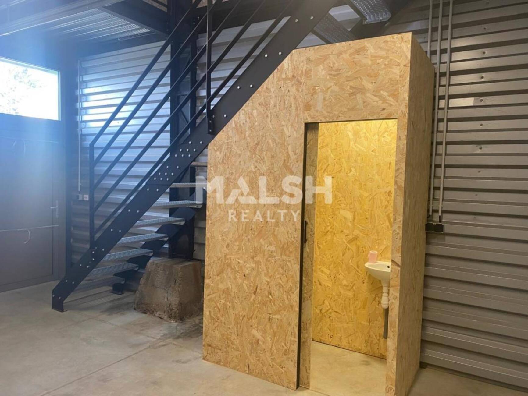 - Lot B de 98,30 m² dont 48 m² de stockage/atelier au RDC, 1,3 m² de WC au RDC et 49 m² de bureaux au R+1