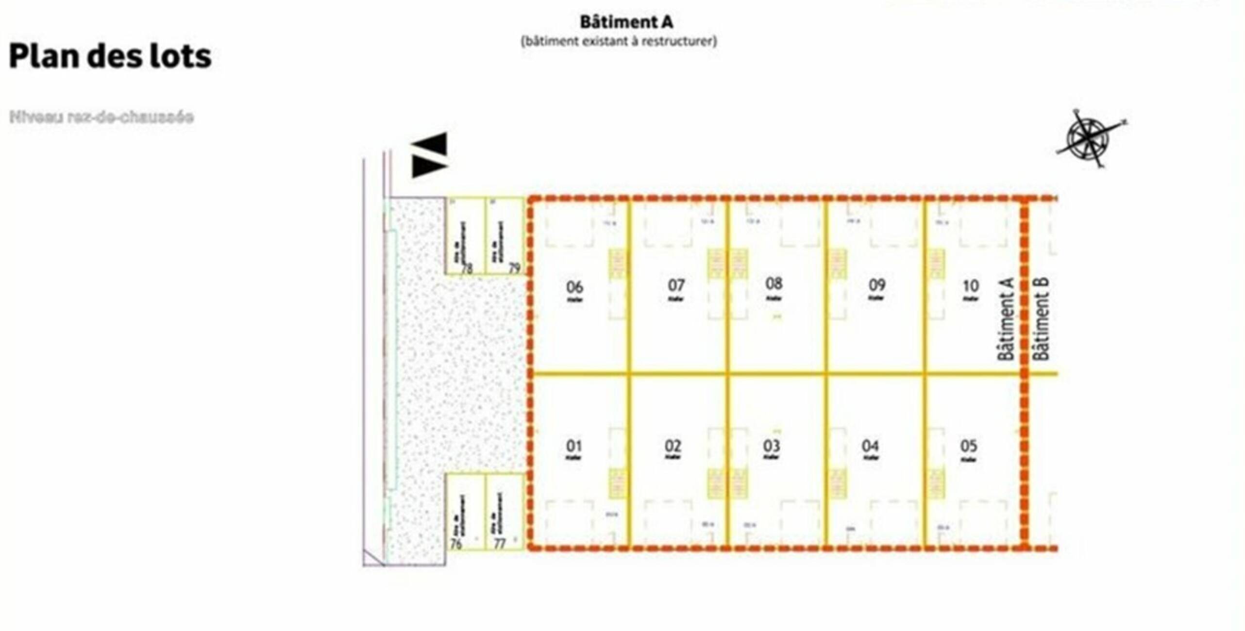 | Batiment - Lot | Etage | Type | Surface totale (en m2) | Emplacement(s) de parking | Loyer annuel HT/HC | Provision annuelle pour charges et taxes HT | Disponibilité |
