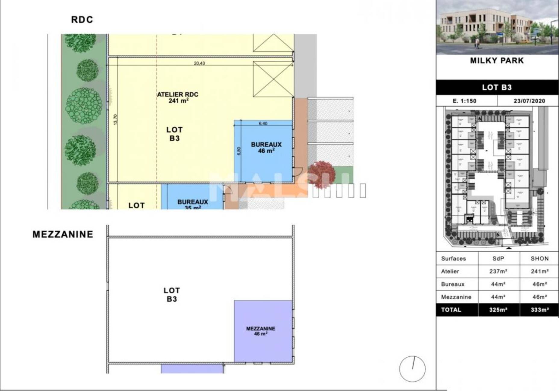 | Total Cellule B3 | Activités | 325 | 1er décembre 2025 | 114,46 HT/HC/m²/an | 2 090 HT/an | 20 % HT du loyer annuel HT à la charge du preneur, payables à la signature du bail | T.V.A. (20%) | commercial 3-6-9 ans | ILAT Indice des Loyers des Activités Tertiaires | Trimestriel d'avance | B3 | |||||||