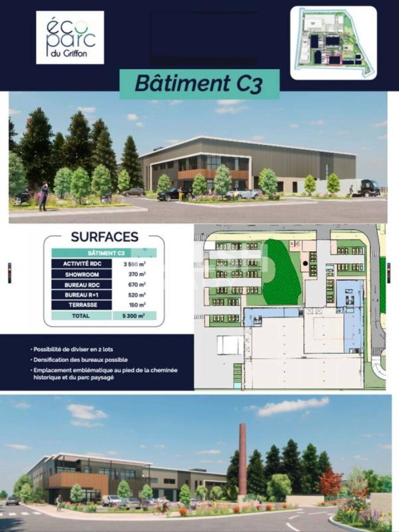 - Bâtiments C1 & C2 : 4 500 m² (ensemble mixte)