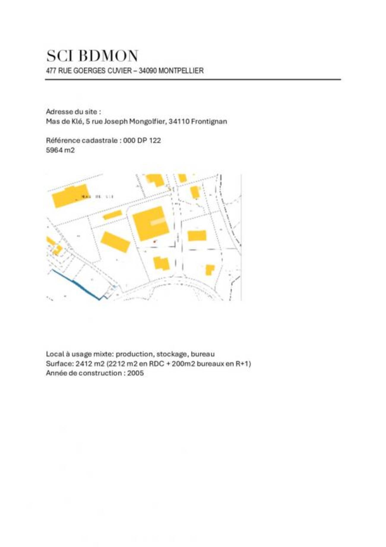 A proximité de la sortie d'autoroute de Sète (Sortie n°33) et situé sur une parcelle indépendante de près de 6 000 m²,