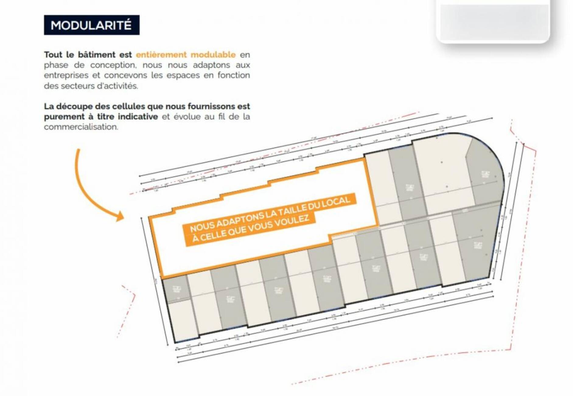 Locaux modulables en fonction du secteur d'activité.