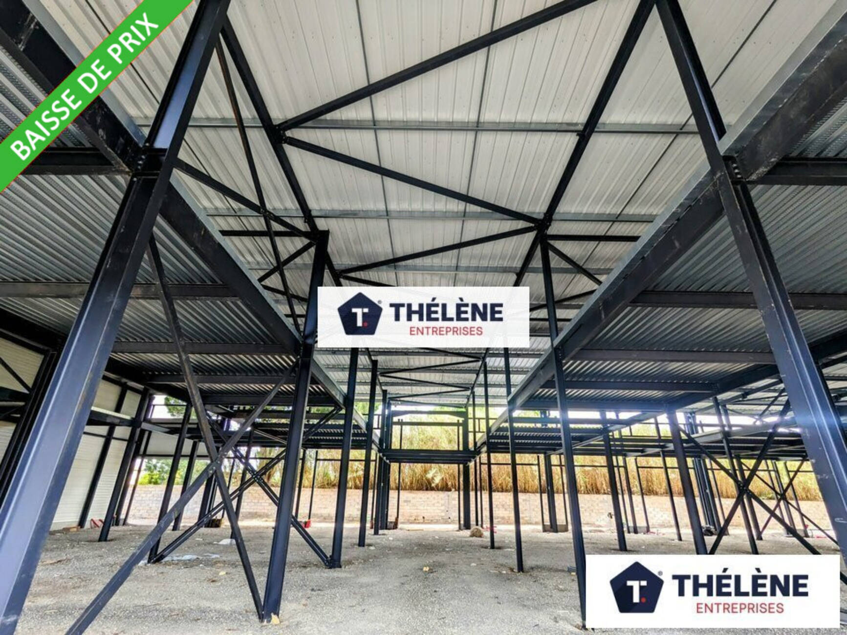 Charpente métallique, dalle béton, grande Hauteur sous plafond.