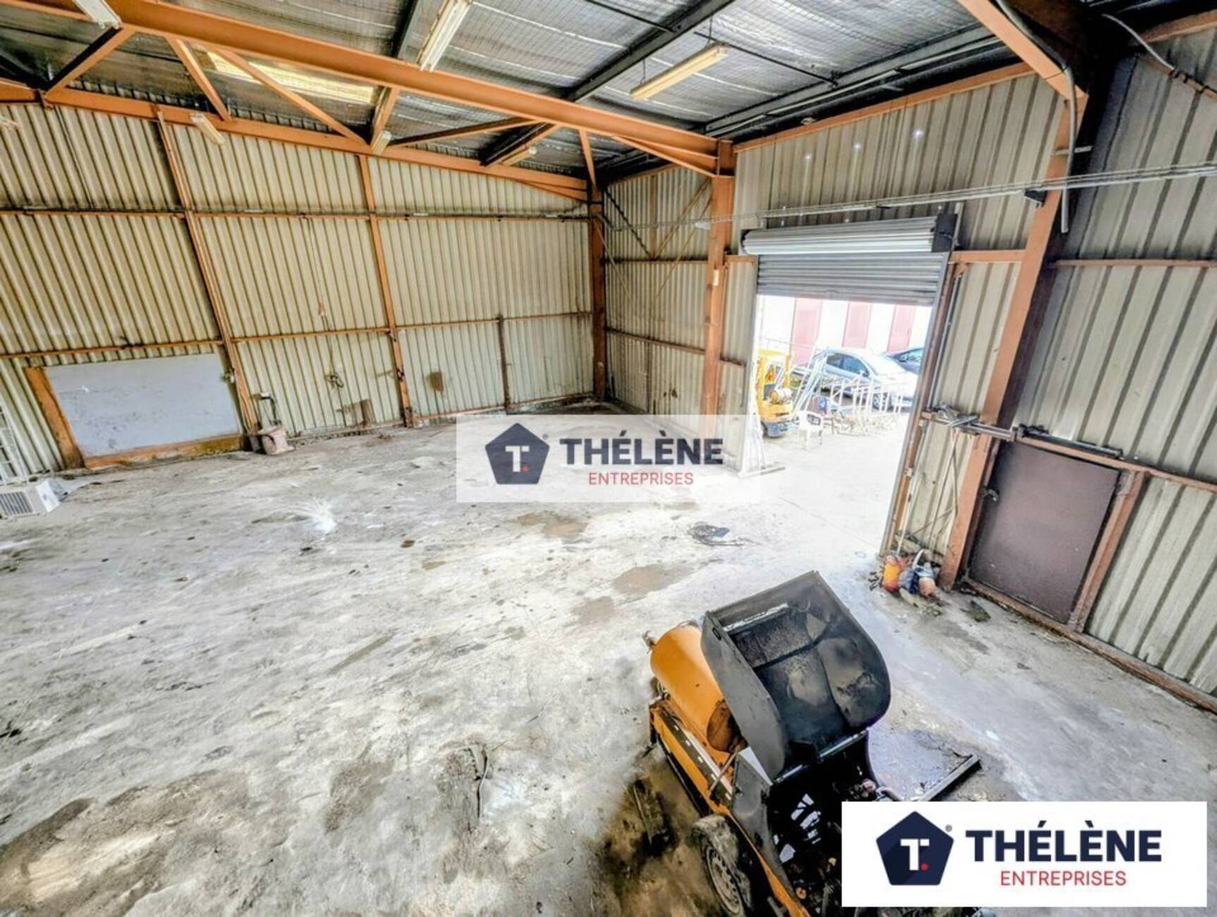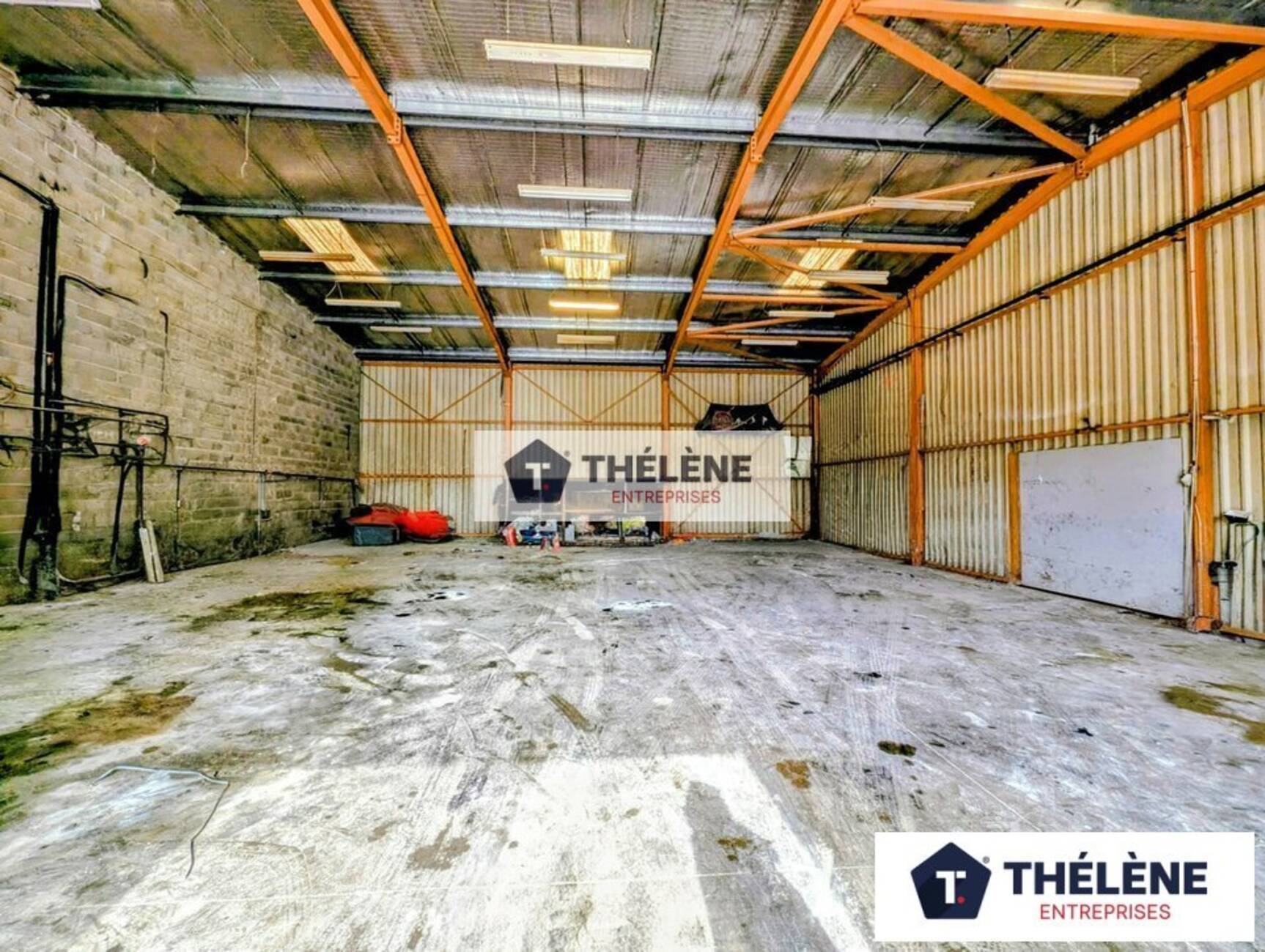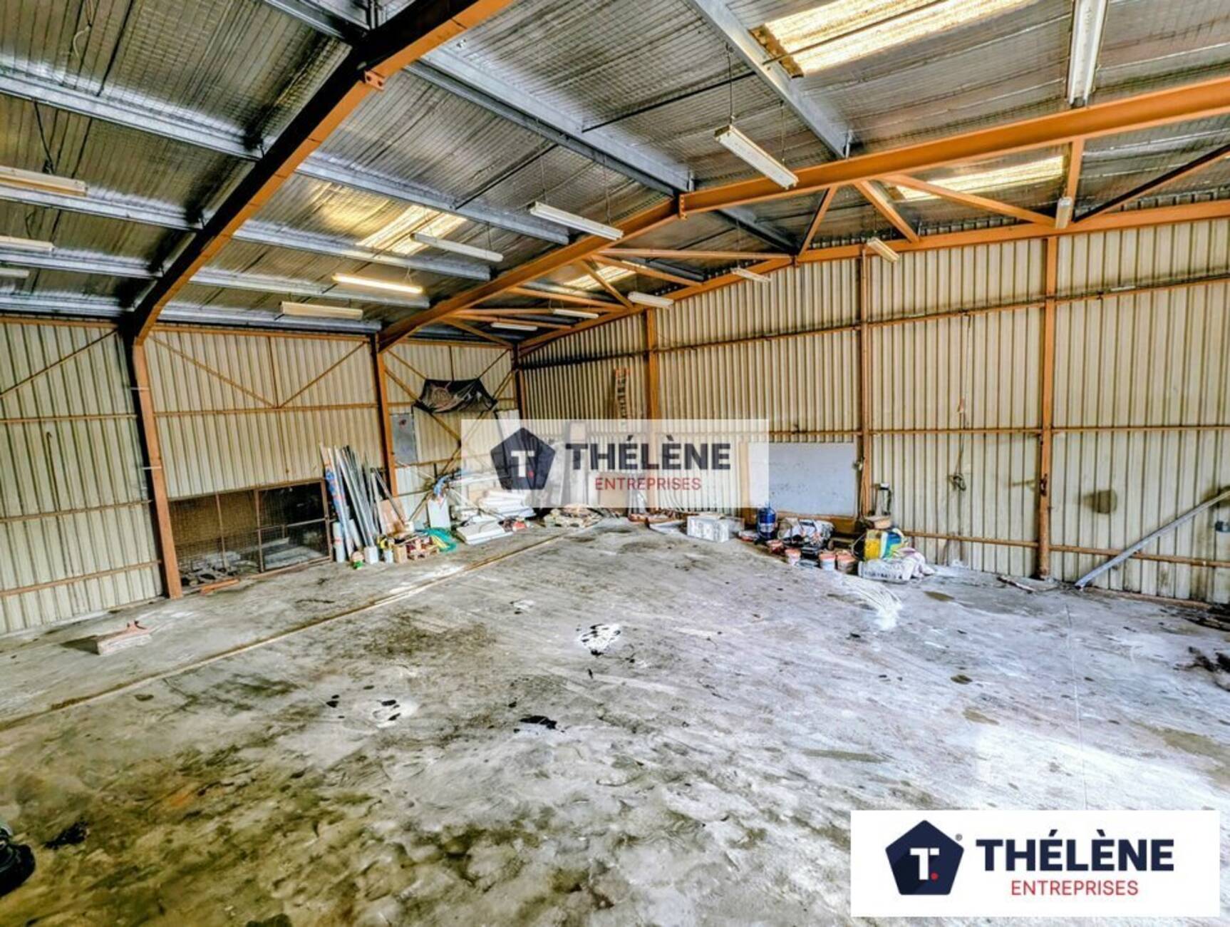 Stockage : 300m² environ avec un volet roulant métallique de 3m de large et 4m de hauteur. Toiture isolée. Triphasé. 1WC
