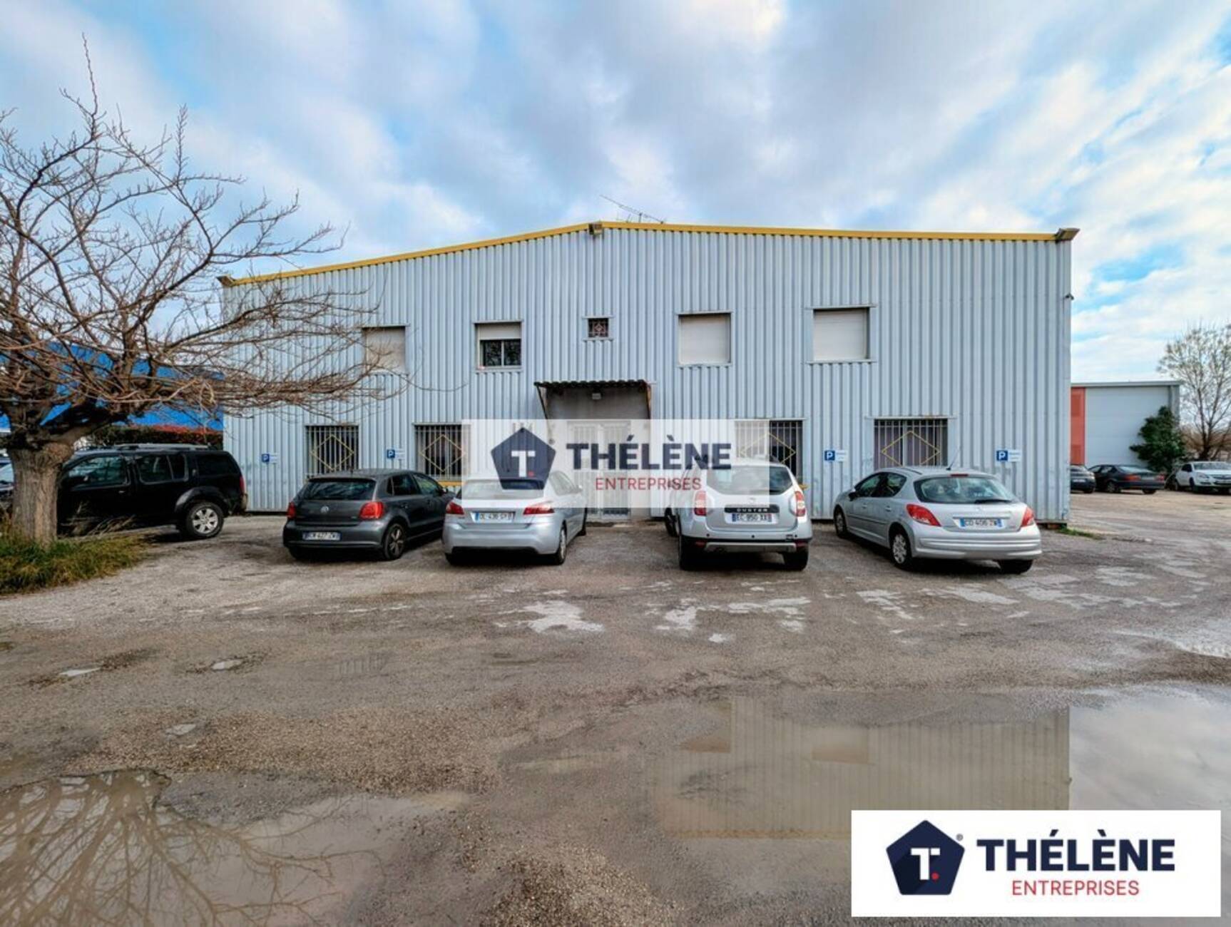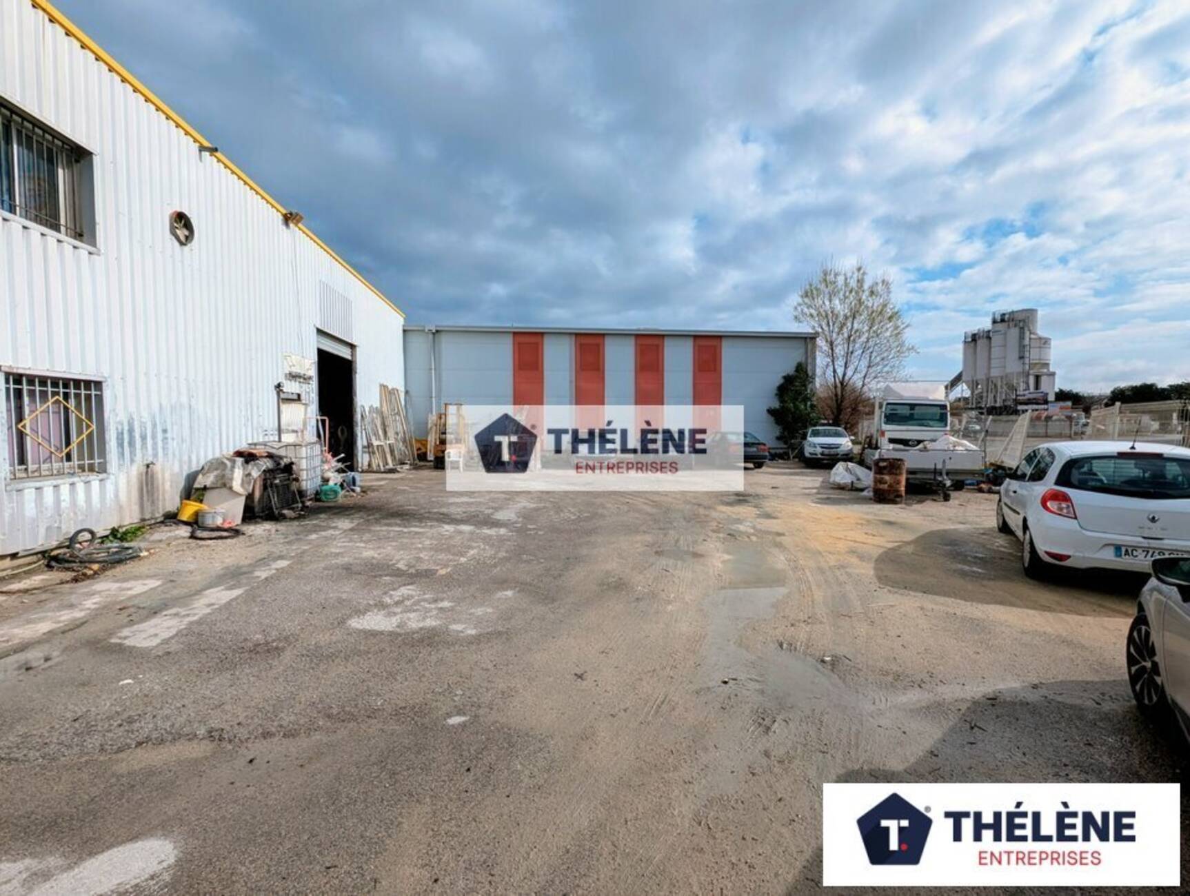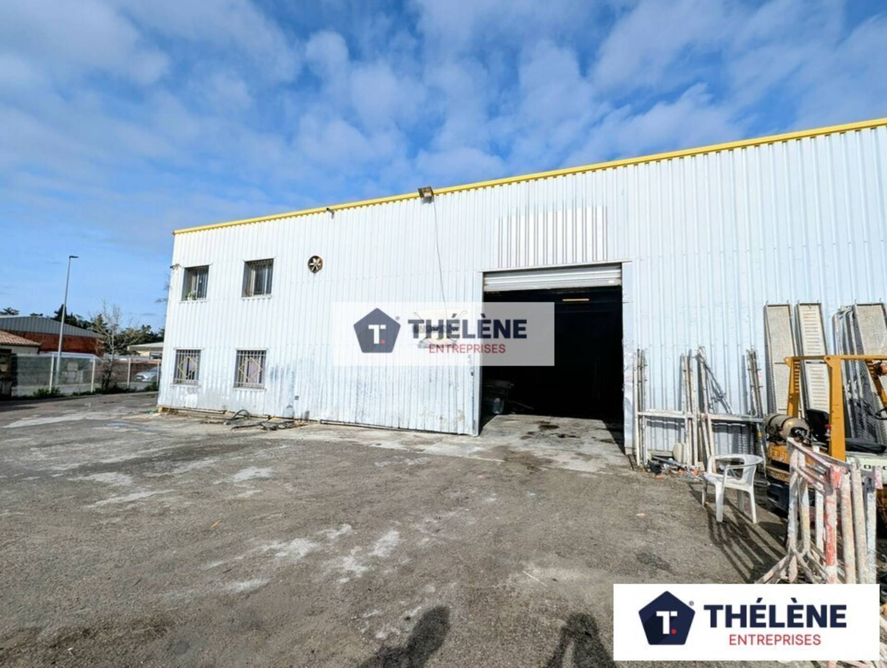 Stockage : 300m² environ avec un volet roulant métallique de 3m de large et 4m de hauteur. Toiture isolée. Triphasé. 1WC