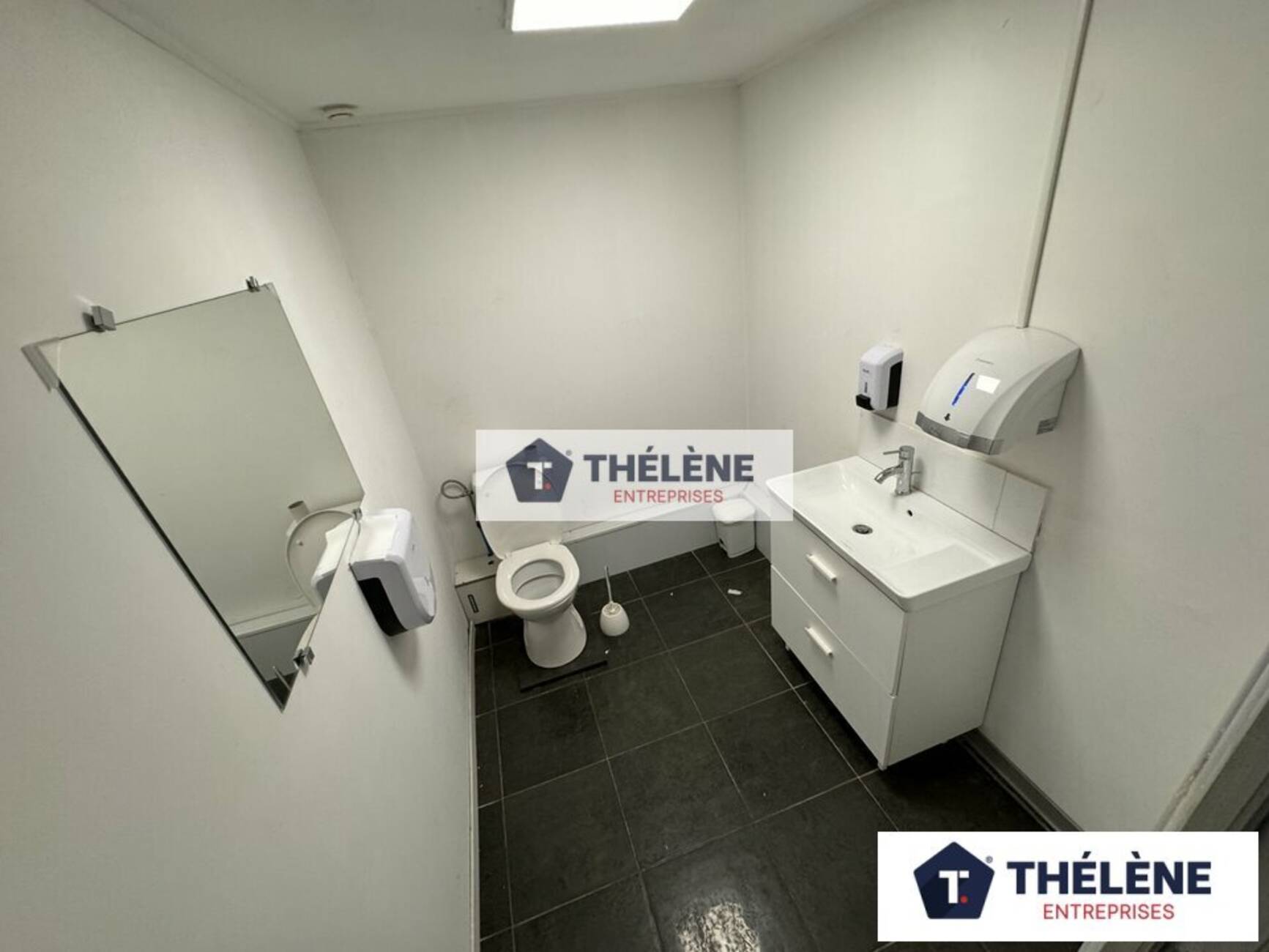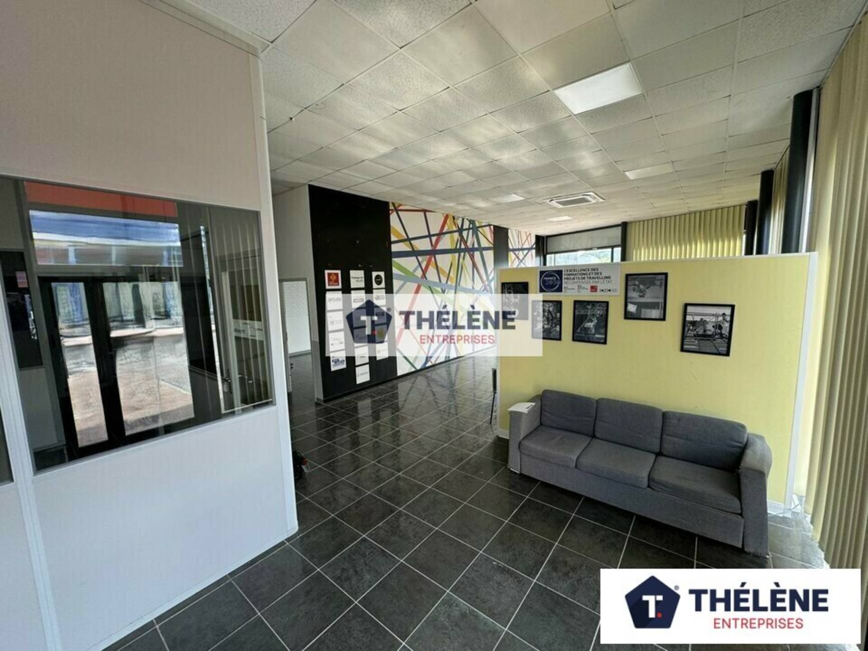 Thélène Entreprises vous propose à la location un local commercial à forte visibilité de 350 m², comprenant une surface de vente, deux WC dont un PMR, ainsi qu'une partie atelier/stock équipée d'une porte sectionnelle et un bureau.