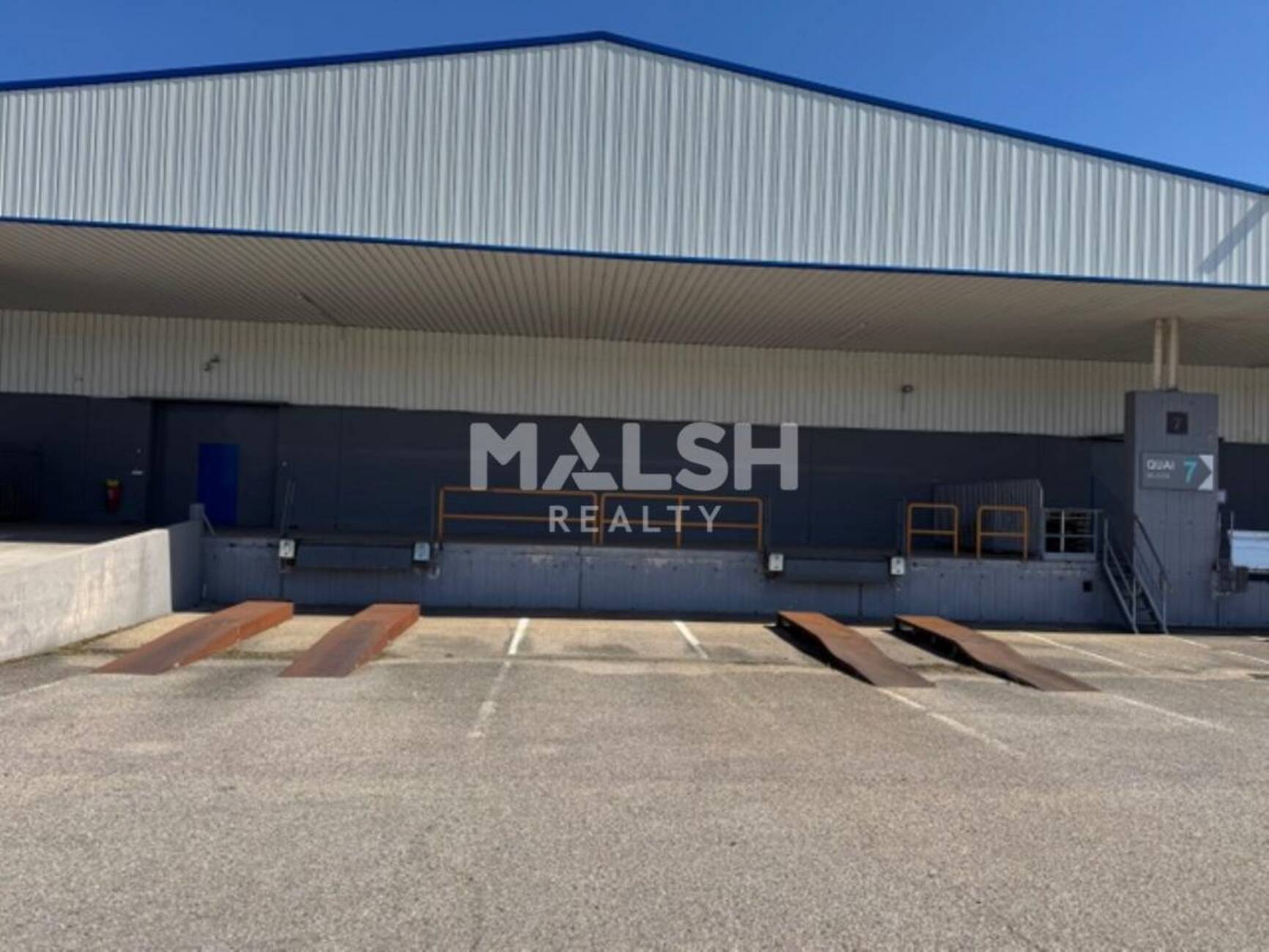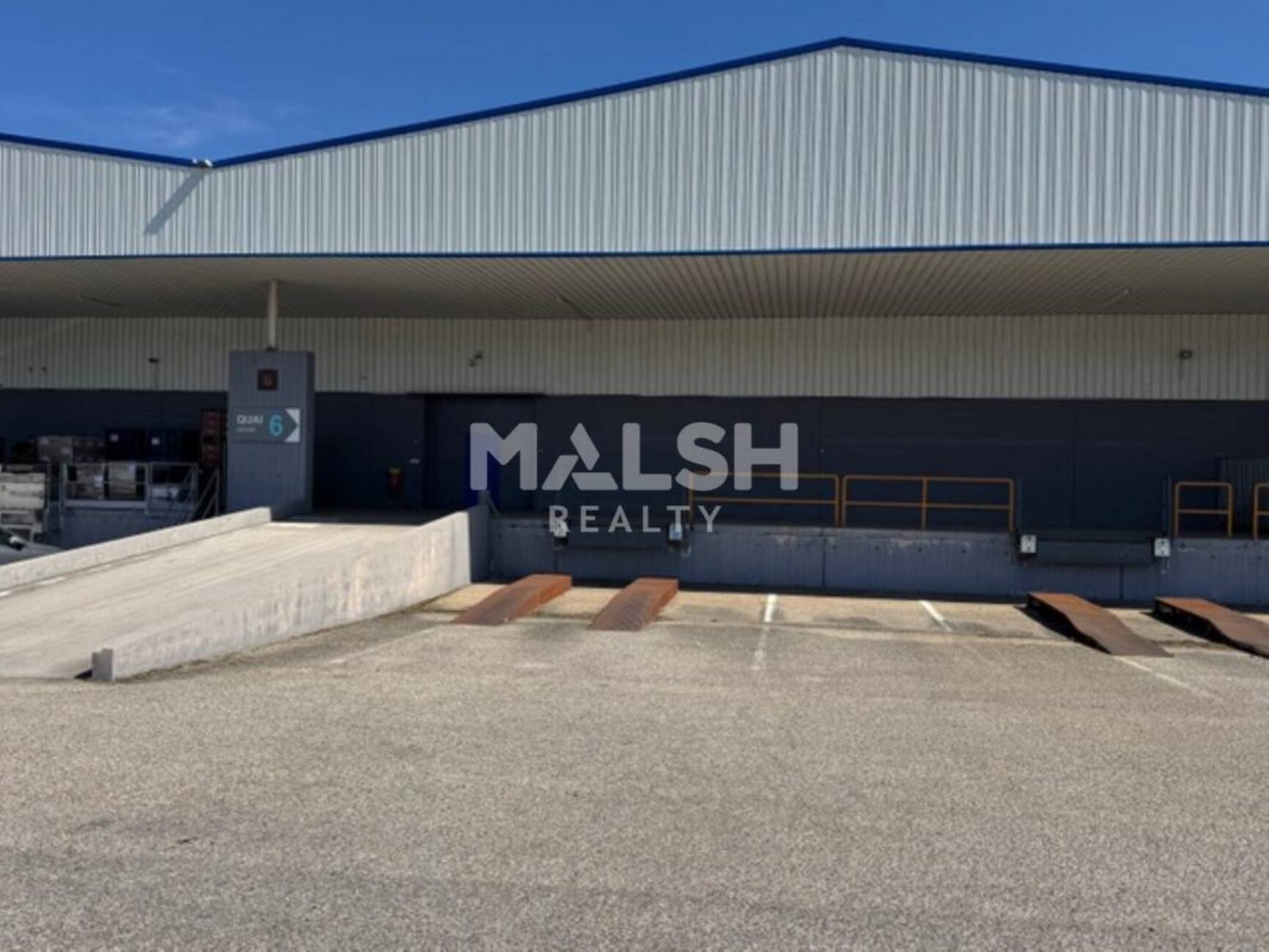 - 1 porte sectionnelle 3 m x 3 m donnant sur un quai filant sous auvent disposant de