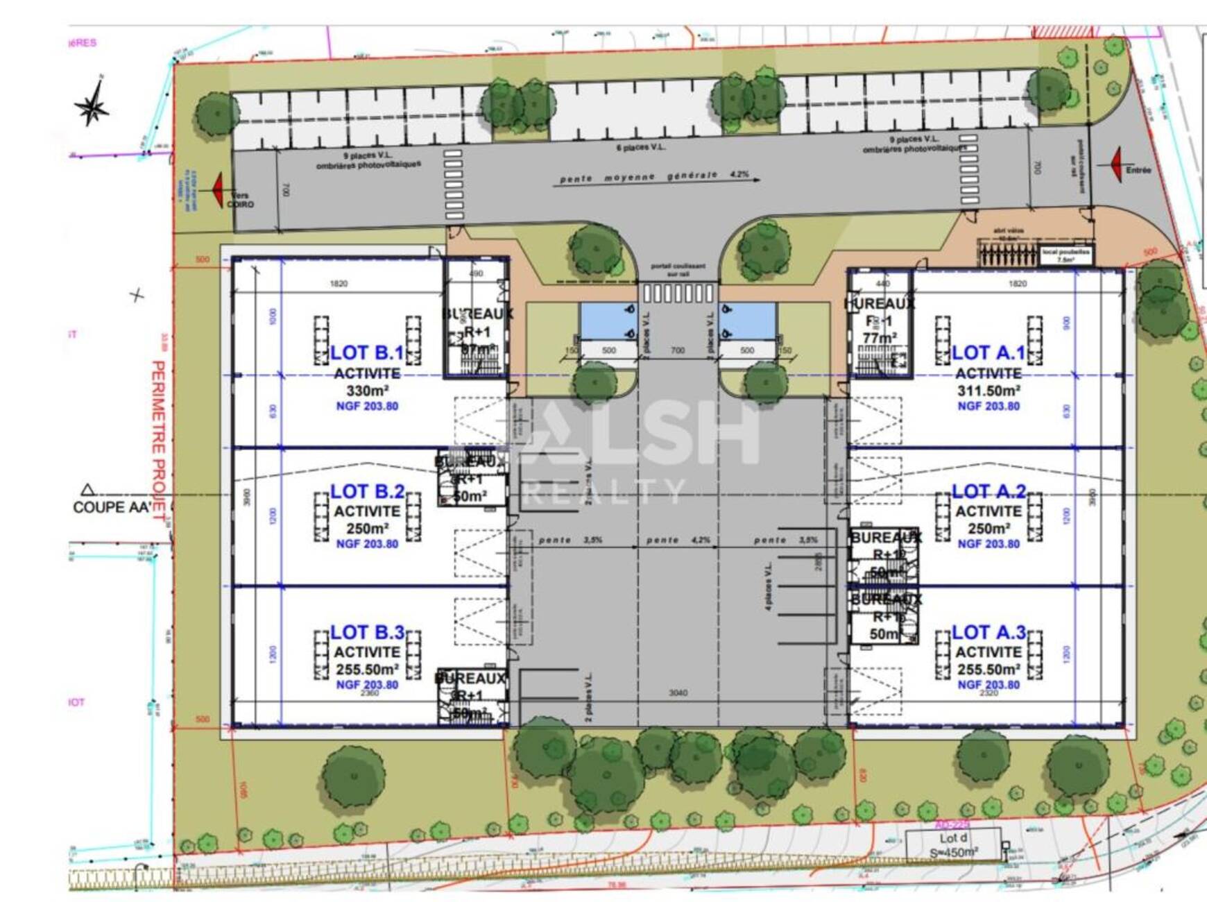 | Total Cellule A.2 | Activités | 302,1 | Livraison à partir du 4ème trimestre 2026 | 15 % HT du loyer annuel HT/HC à la charge du preneur, payables à la signature du bail | T.V.A. (20%) | commercial 6-9 ans | ILAT Indice des Loyers des Activités Tertiaires | Trimestriel d'avance | A.2 | |||||||||