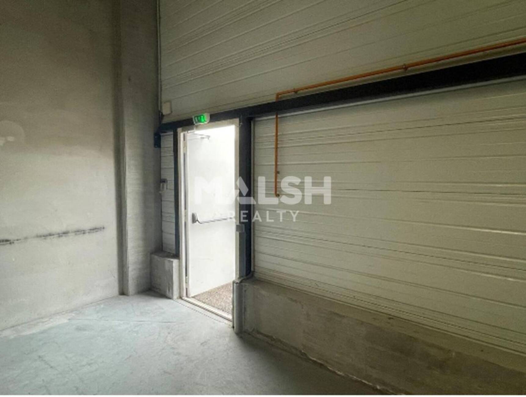 - Local de 230 m² chauffé/équipé d'une porte sectionnelle poids-lourds avec un quai