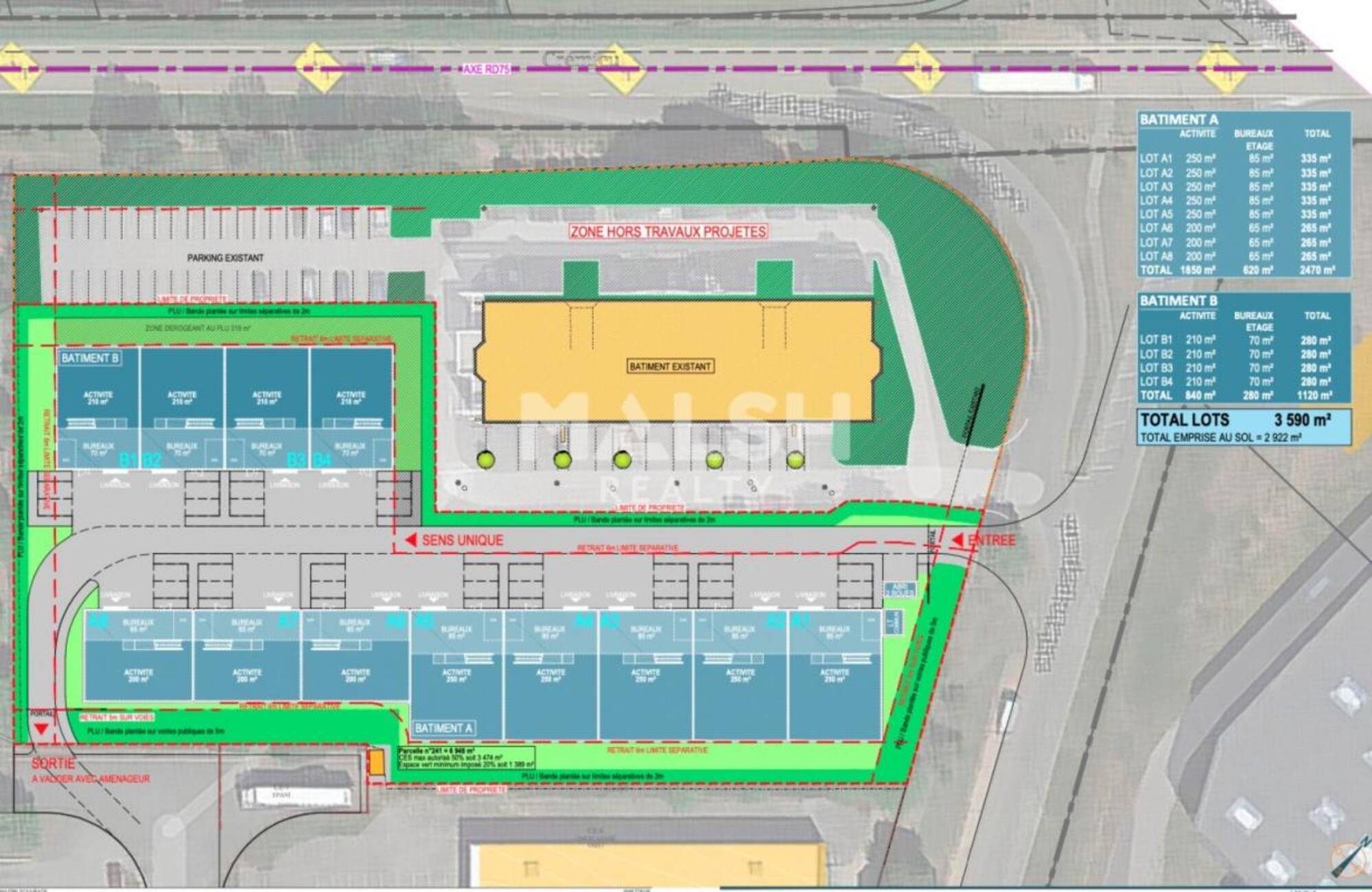 MALSH Realty vous propose à la location à Saint Quentin Fallavier, au sein d'un nouveau parc d'activités clos et sécurisé composé de 2 bâtiments, des locaux d'activités neufs d'une surface totale d'environ 1466 m² divisibles à partir de 274 m².