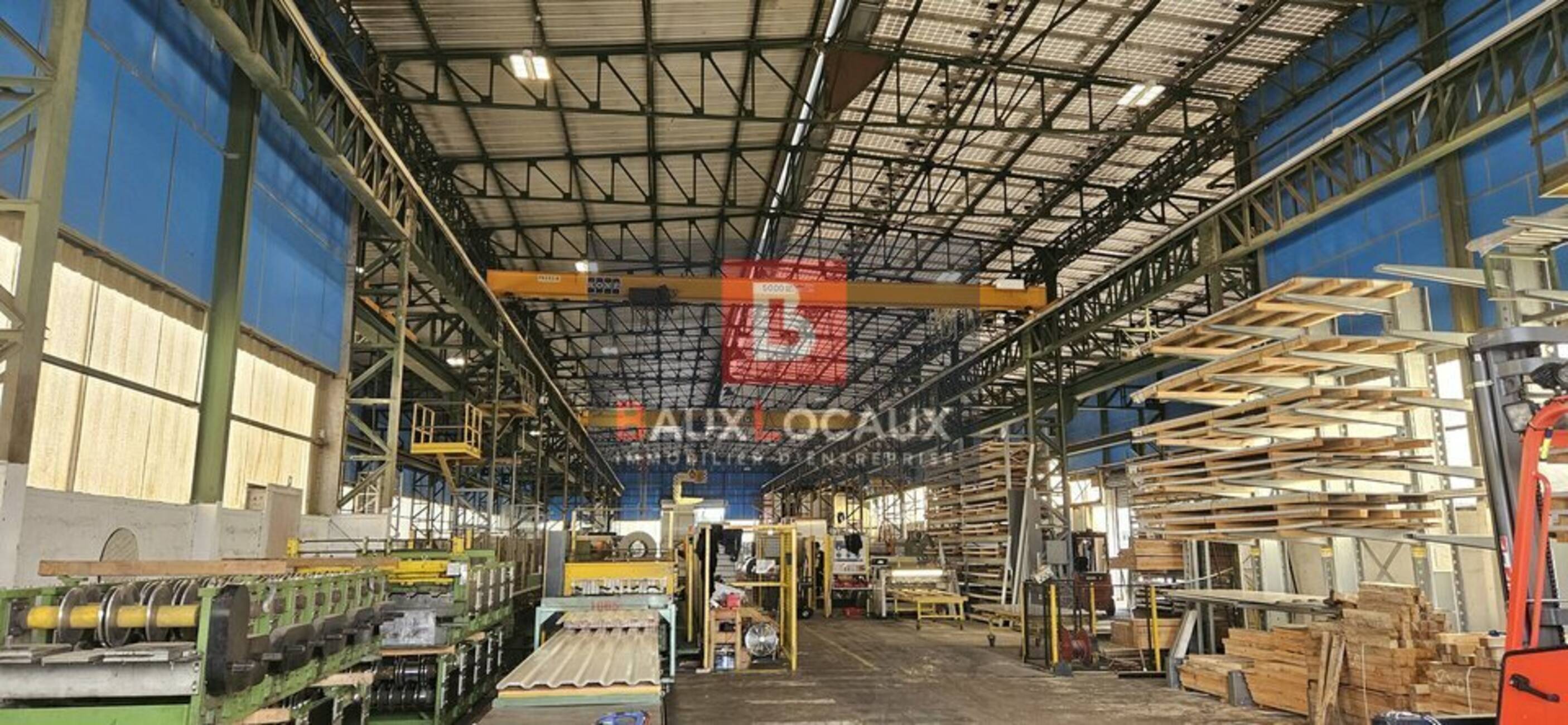 Accès à l'entrepôt par deux portes sectionnelles de 5 x 5 m et 4 x 4 m.L'ensemble comprend également :6 ponts roulants fonctionnels,environ 180 m² de bureaux aménagés sur 2 niveaux,locaux sociaux avec vestiaires et douches,grand parking pour véhicules légers,aire de manoeuvre et de retournement poids lourds,éclairage LED et fibre optique.Un bien rare sur le secteur offrant d'excellentes conditions d'exploitation.