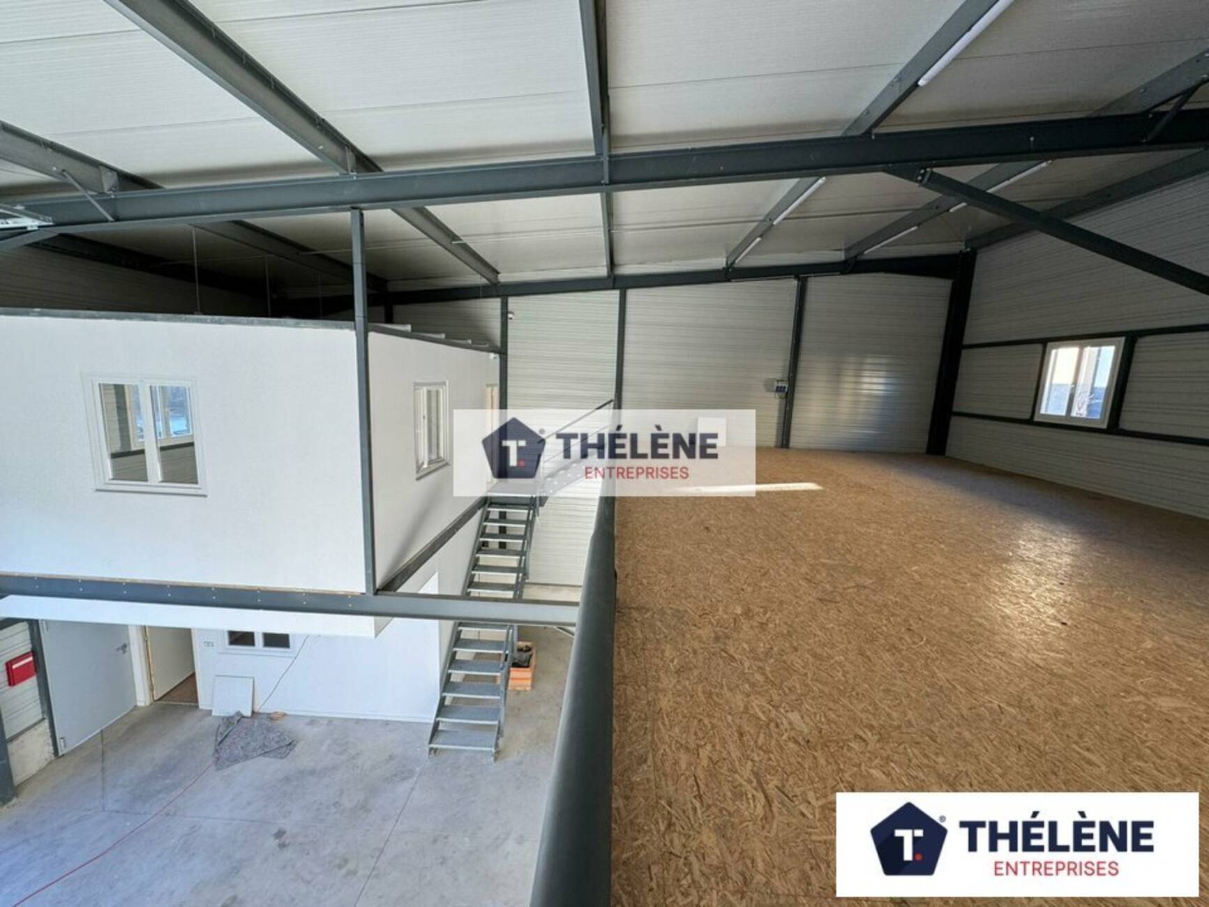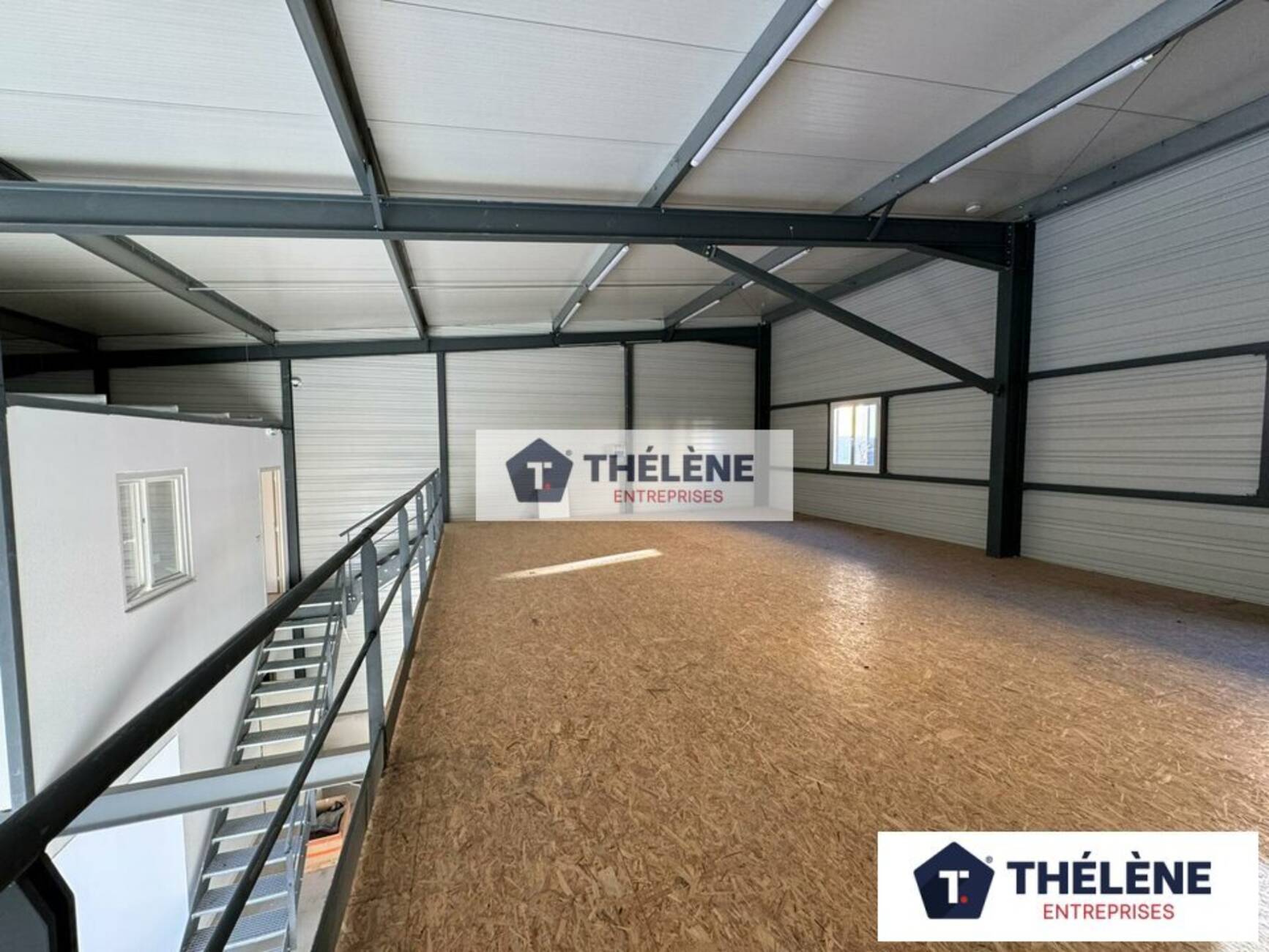 80 m² de mezzanine de stockage, avec une hauteur sous plafond de 4,50 m, parfaite pour un usage supplémentaire de stockage.