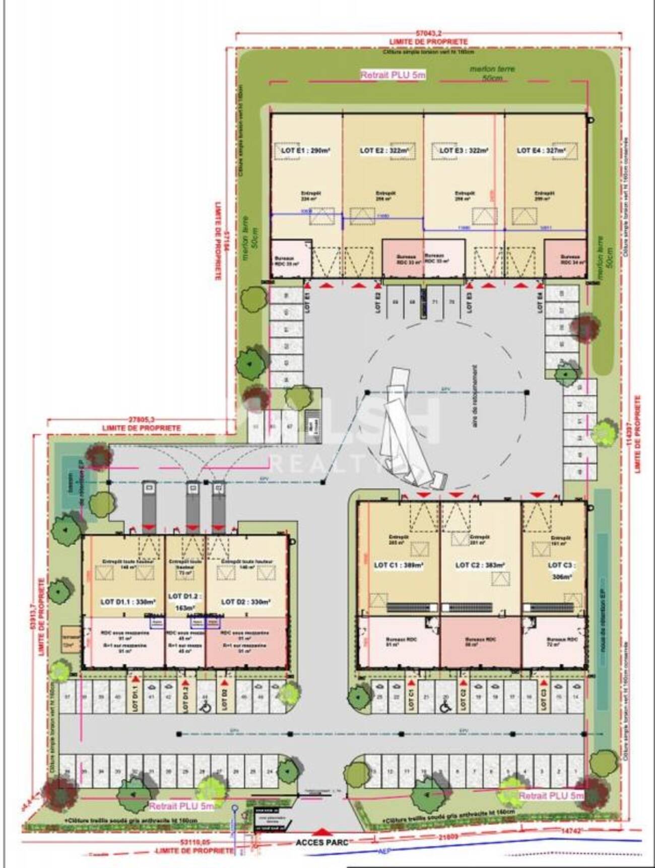 Prix de vente parking : 4000 euros HT/UnitéLot D1.2 de 163 m² disponible à la vente après le lot D1.1