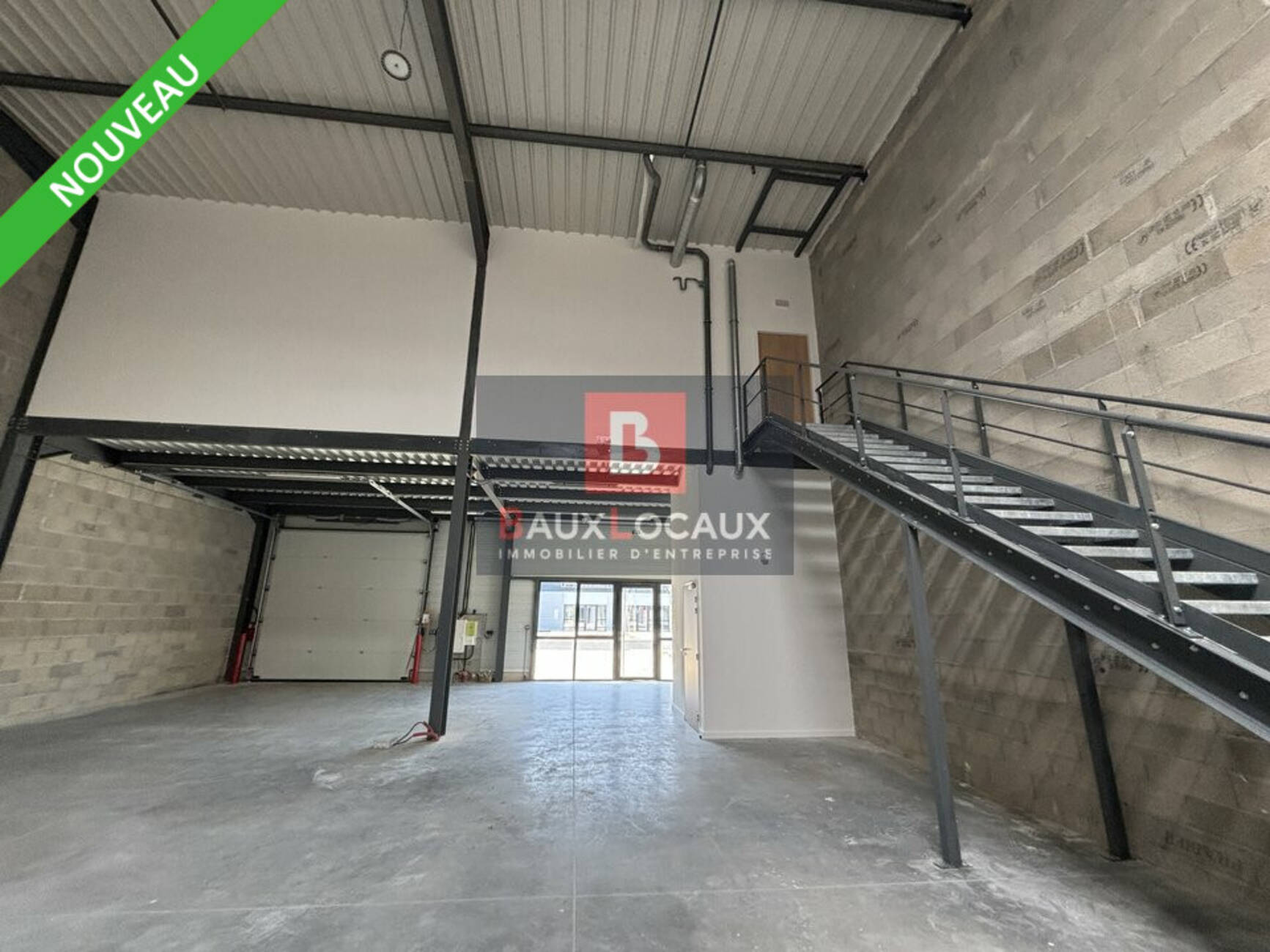 - D'une partie activité d'environ 480 m² avec une hauteur sous plafond de 7 mètres, une dalle béton supportant 3T/m², une porte sectionnelle motorisée, une porte vitrée à la française et des sanitaires PMR.