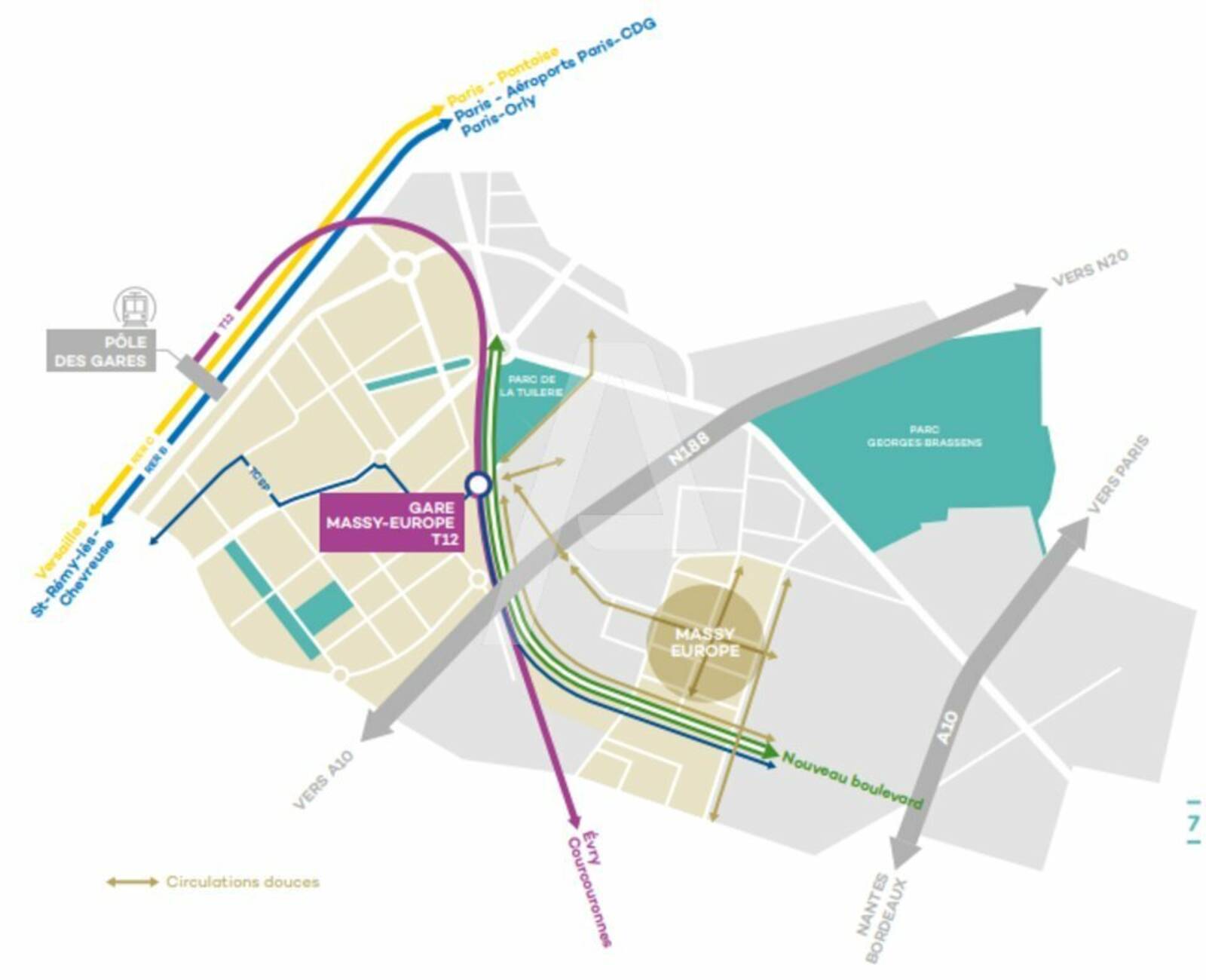 - Bus: - Futur Gare Tram Train T12 "Massy-Europe" prévue en 2023
