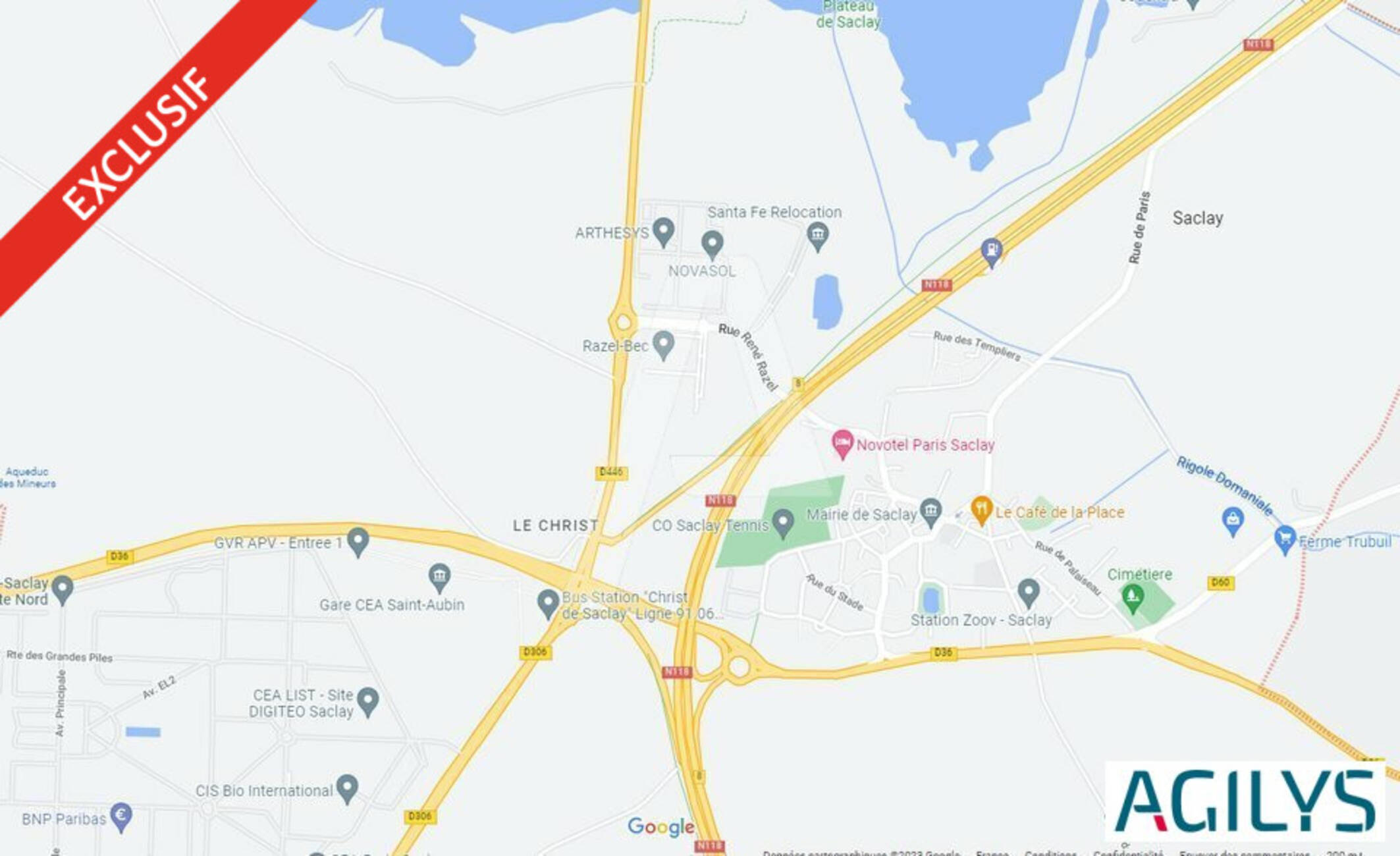 - Autoroute: Accès : N118, A10, RER/TGV Massy-Palaiseau, Orly à 20 min