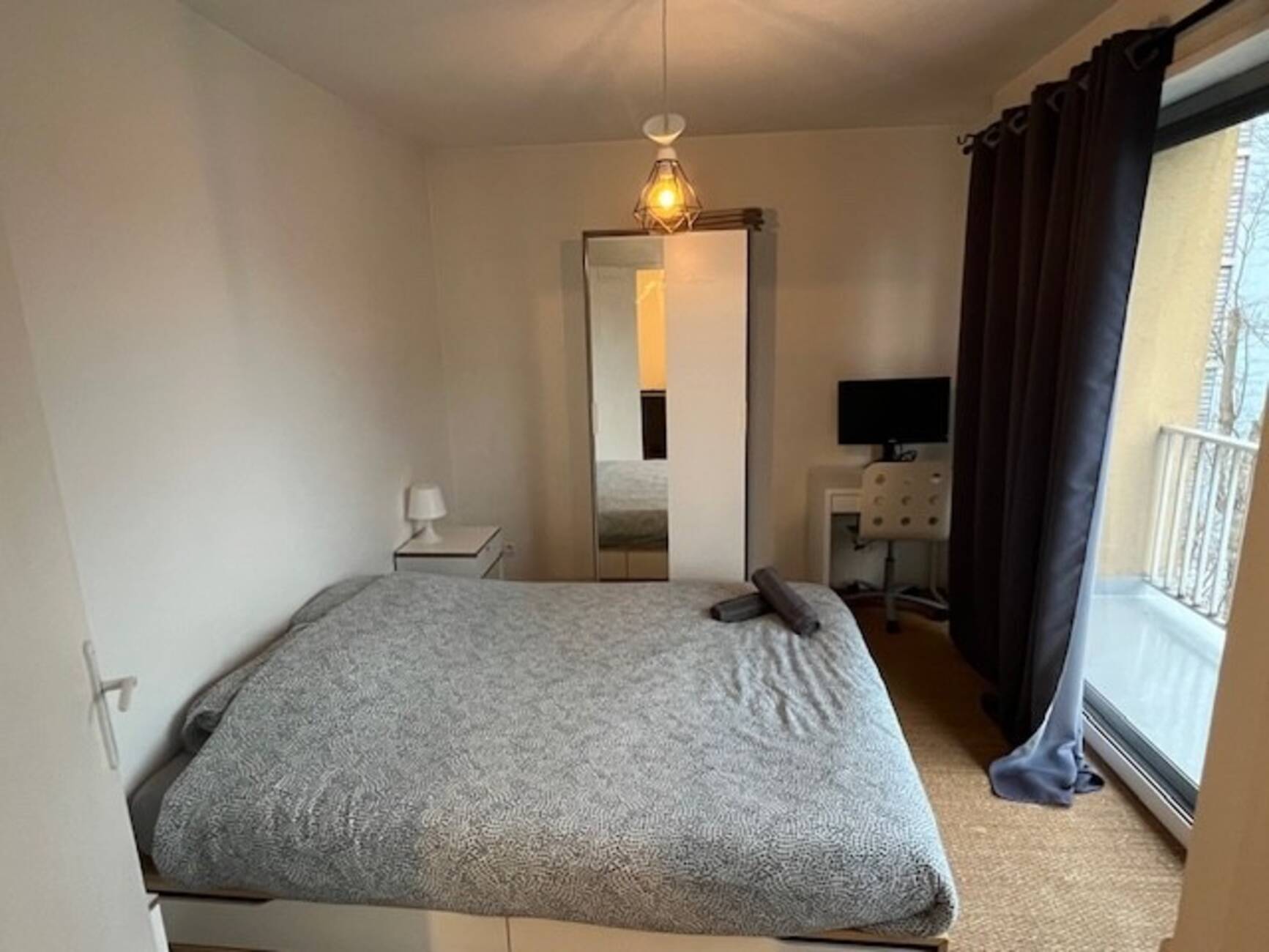 Il est composé d'une entrée avec placard, d'une pièce de vie avec accès au balcon, d'une cuisine équipée, d'une salle d'eau moderne et d'une chambre avec également accès au balcon.