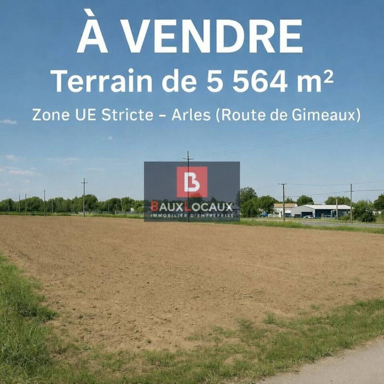 À VENDRE - Terrain de 5 564 m² - Zone UE Stricte - Arles (Route de Gimeaux)Emplacement stratégique sur la route de Gimeaux à Arles, dans une zone à vocation économique, avec accès direct à la voirie et excellente visibilité.